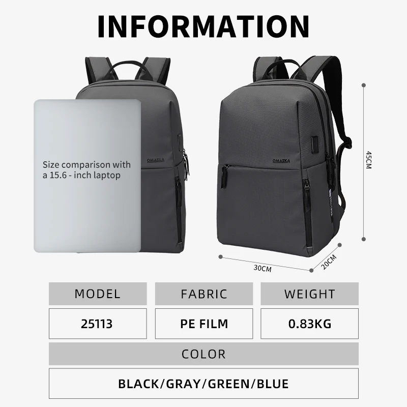 Omaska Wholesale17 Inch Men's Waterproof Nylon Laptop Backpack USB Large Capacity Fashion Business Mochila
